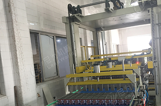 1、自動(dòng)碼垛:罐頭通過(guò)鏈道堆積到輸送線上,開(kāi)動(dòng)機(jī)器,罐頭被吸起并放到指定的位置上,重復(fù)相同的動(dòng)作,直至將罐頭碼成整垛由叉車叉出。